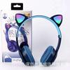 Auriculares inalámbricos con orejas de gato y luz LED intermitente, tarjeta de juego de música p47M