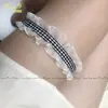 Nuevo Encaje a Cuadros Encaje Fruncido Encaje Plisado Lolita Banda Elástica Anillo Elástico para Muslo Cosplay