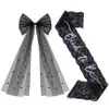 Set de Dos Piezas con Velos de Novia Nuevos con Lazos Transfronterizos y Correa para el Hombro, Cinturón de Encaje de Etiqueta, Accesorios para la Cabeza de Despedida de Soltera