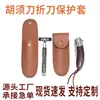 En stock Funda de almacenamiento plegable para cuchillo de barba de cuero Estuche portátil con cierre a presión Cubierta protectora para maquinilla de afeitar Kit de herramientas de mano para viaje