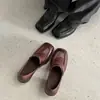 Mocasines de piel de vaca lavada texturizada para commuting 2026 tacón grueso zapatos pequeños de cuero punta cuadrada suela gruesa piel genuina apertura profunda zapatos de una sola pieza mujer