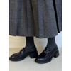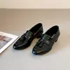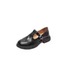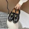 Mocasines Negros Transfronterizos para Mujer 2025 Nuevos Zapatos con Cadena de Suela Gruesa Estilo Británico Negro Zapatos Pequeños de Cuero Listos para la Venta