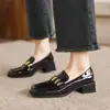 Nuevos Mocasines Casuales para Mujer Suela de Goma Suave Boca Baja Talla Grande Zapatos Tacón Medio Zapatos de Charol con Tacón Cuadrado Uso en Todas las Estaciones Zapatos Pequeños de Piel