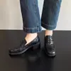 2025 Estilo Británico Slip-On Ligeros Punta Redonda Bloque Tacones Altos Zapatos Pequeños de Cuero Mocasines Talla Grande Gamuza para Mujer