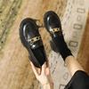 Comercio Exterior Estilo Británico Hebilla Metálica Individual Zapatos Planos Cómodos de Tacón Medio Moda Nueva 2026 para Mujer Hebilla Simple