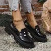 2026 Nuevo Charol Brillante Borla Tacón Medio Mocasines Retro Europeos y Americanos Talla Grande Moda de Exportación Zapatos Casuales