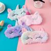Máscara de ojos de unicornio transfronteriza de Amazon, nueva máscara de ojos de peluche para dormir con cuerno plateado de dibujos animados, pegatina de piel de cuatro colores