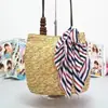 Bolsa de Toalla de Seda Tejida con Paja Fukai Bolsa para Mujer Coreana Paja de Trigo con Sándwich Cuentas de Madera Bolsa Decorativa Tejida con Paja con Bufanda de Seda