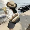 Nuevo bolso tejido a mano con fondo de cuero, bolso de paja de gran capacidad, conjunto de sombrero de paja para sol y protección solar, estilo casual de vacaciones