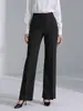 Pantalones de Traje Negros Acampanados con Caída de Alta Gama, Corte Delgado, Estilo High Street, Pantalones de Pierna Recta, Modernos