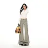 Pantalones de Traje Grises Kochi Pantalones de Pierna Ancha Estrecha 2025 Nuevos para Viajar Adelgazantes Tencel Lana Rectos Pantalones Scimitar para Mujer
