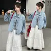 Chaqueta de Mezclilla para Mujer, Estilo Corto de Primavera, Corte Ajustado, Nueva Chaqueta Estilo Coreano, Chaqueta de Mezclilla de Manga Larga para Estudiante, Nuevo Estilo Retro