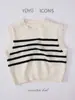 Chaleco de punto con cuello redondo y rayas blancas y negras para niños y mujeres, otoño 2024