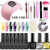 Lámpara de uñas de 54 W, ideal para principiantes, con pegamento para uñas, juego completo de herramientas para decoración de uñas, pegatinas y joyas.