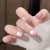 Manicura Corta Rosa Rosa y Blanco Aire Leche Lindo Dulce Simple Estilo de Exportación Europeo y Americano Uñas Postizas Uñas Portátiles