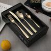 Cuchillo para bistec de acero inoxidable 304, cubiertos occidentales, cuchillo, tenedor y cuchara, cubiertos Crescent de color dorado champán brillante, juego de cuatro piezas de cuchara y tenedor de acero inoxidable