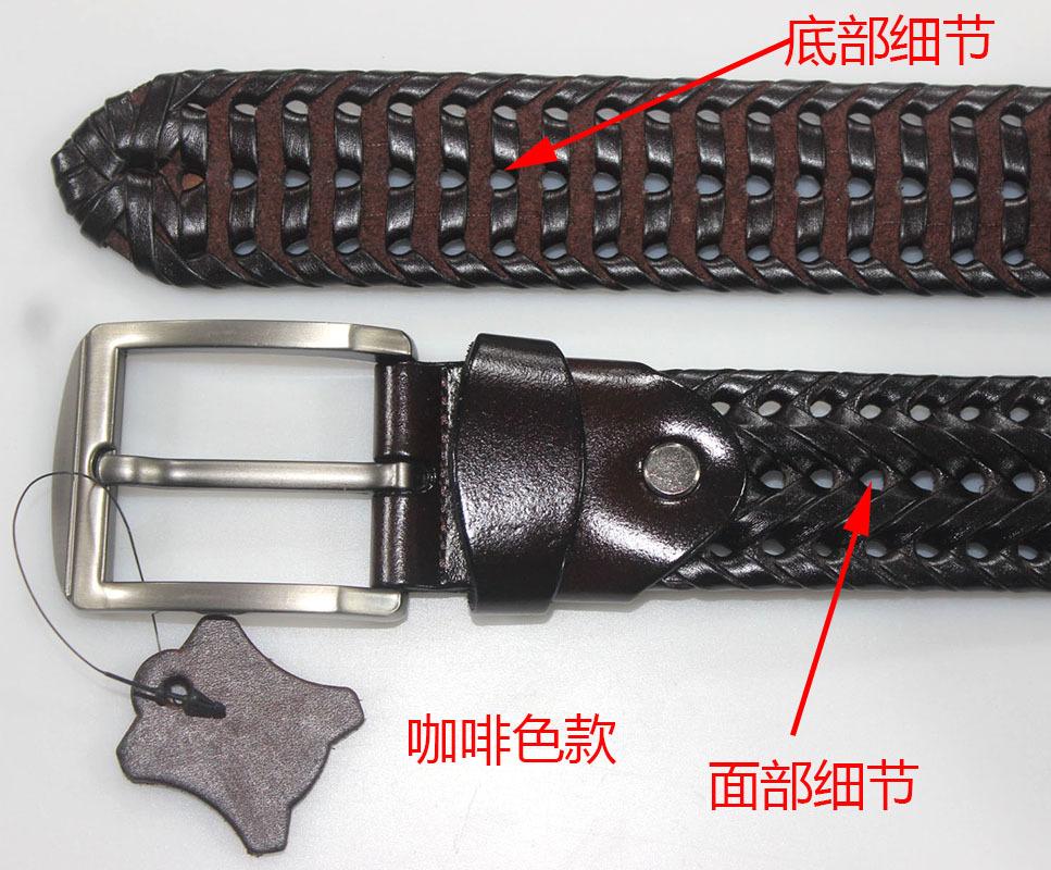 4,0Cinto tecido à mão. A parte frontal deste produto é feita à mão com material de farelo de couro importado da Alemanha. A parte inferior é feita de couro bovino de segunda camada, e a cabeça de couro e a capa do aro de couro são feitas de couro bovino de primeira camada. O produto é espesso e durável, combinando bem com a linha jeans. Todo o cinto possui furos. A posição ideal, o comprimento pode ser ajustado em uma ampla faixa, sendo um cinto casual econômico.