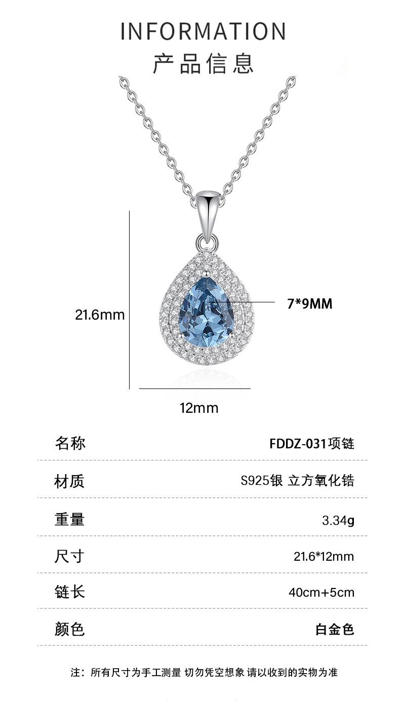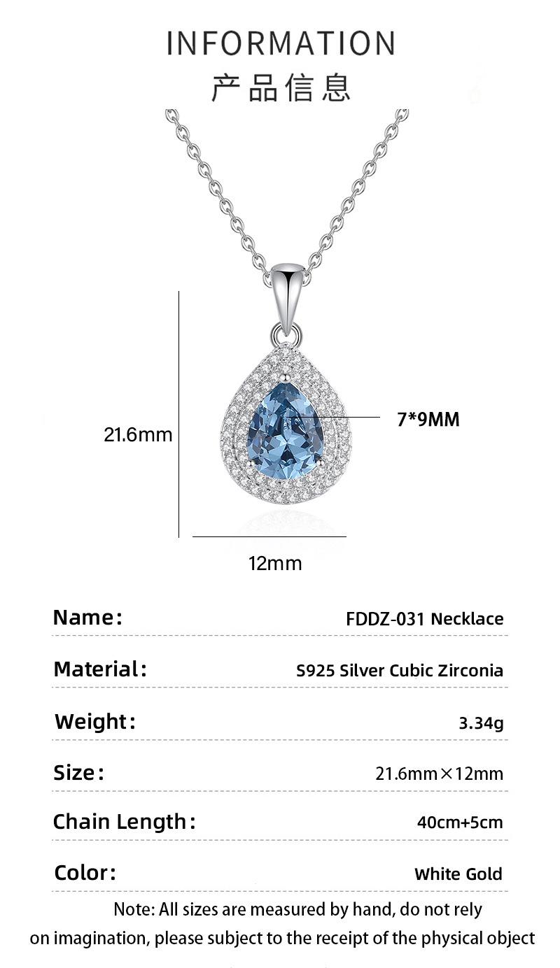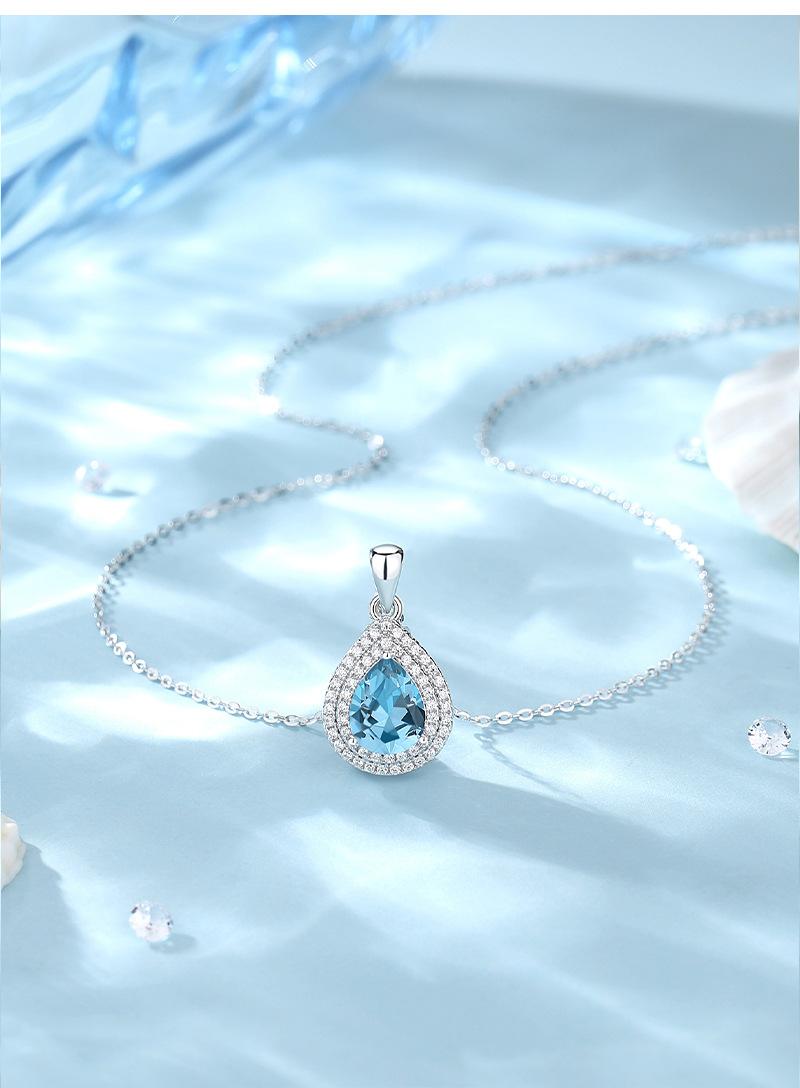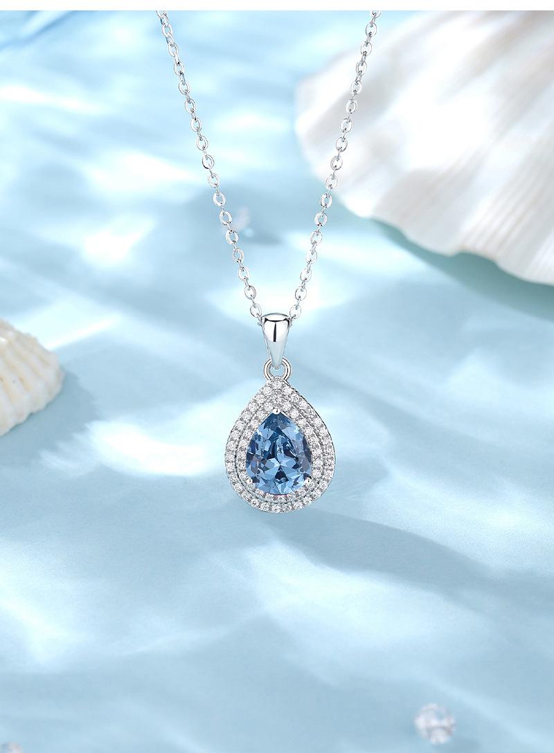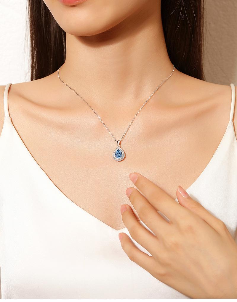 | Venda quente azul espinélio gota colar S925 prata esterlina zircão diamante pingente presente namorada jóias clássico vestido acessórios |