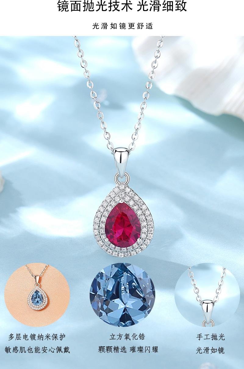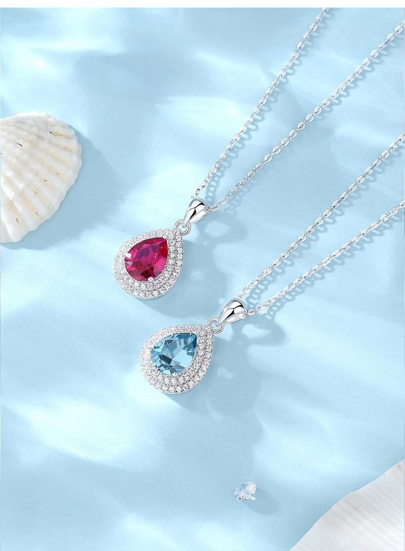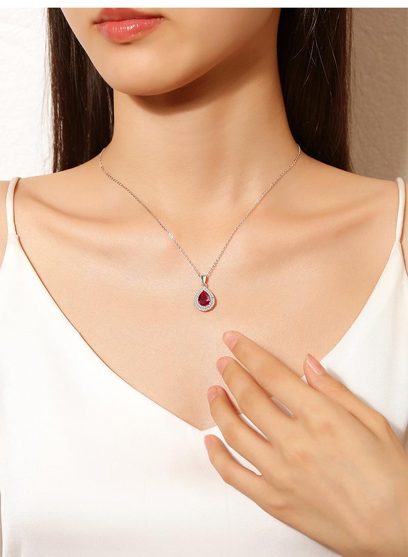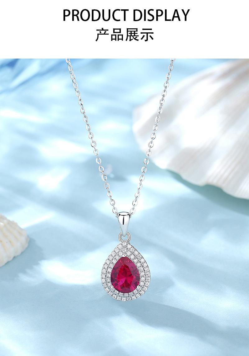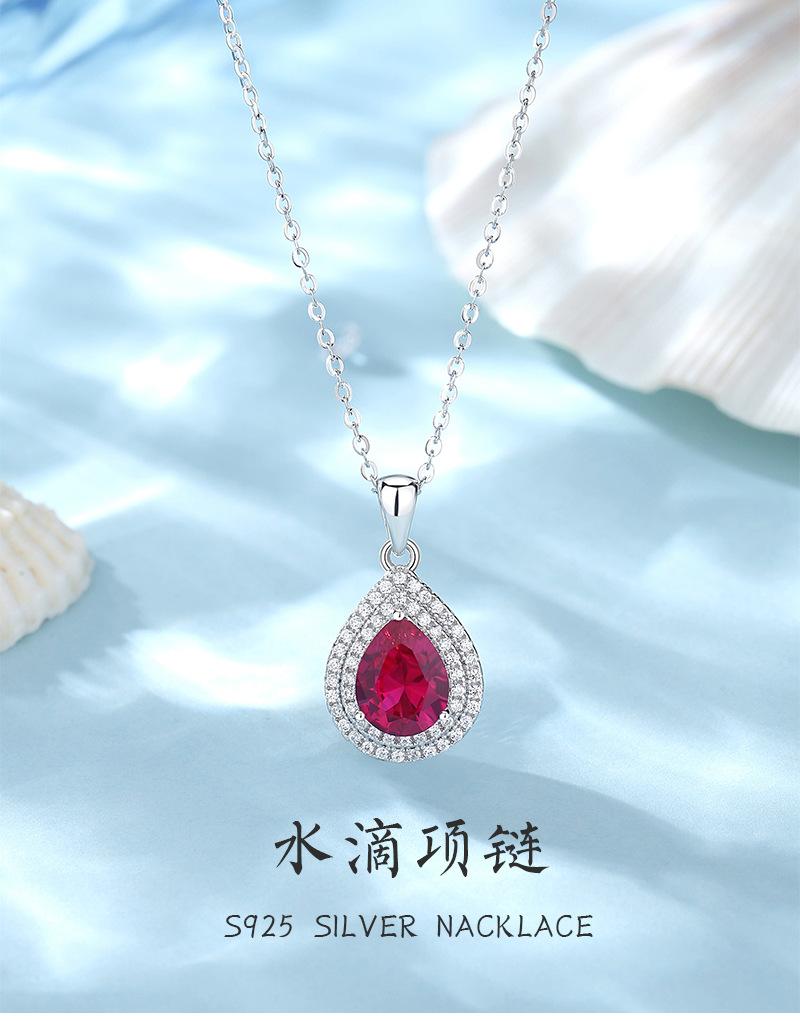 | S925 prata esterlina gota de água pingente vermelho corindo colar moda feminina em forma de pêra gota de água pingente de prata transmissão ao vivo rápido atacado |