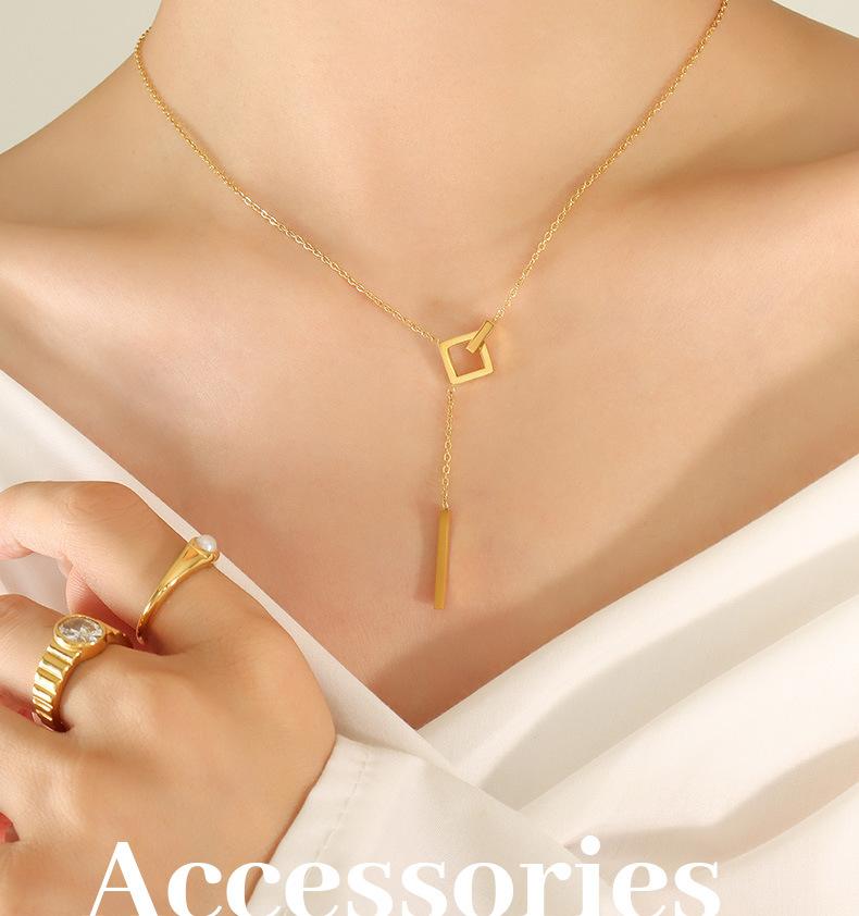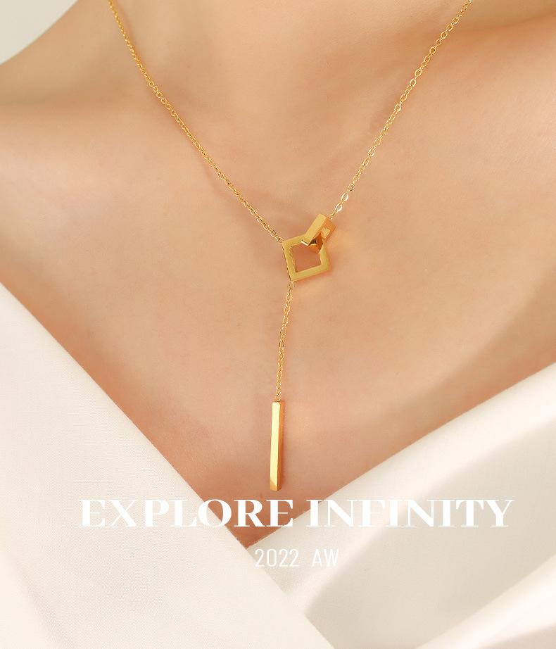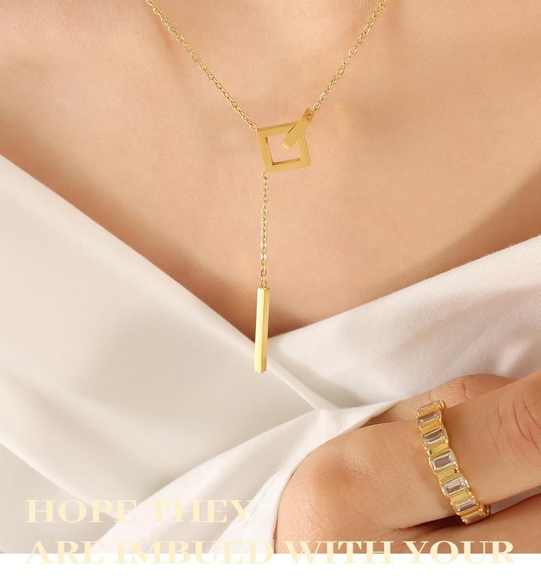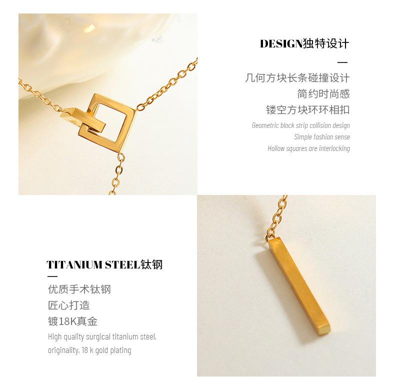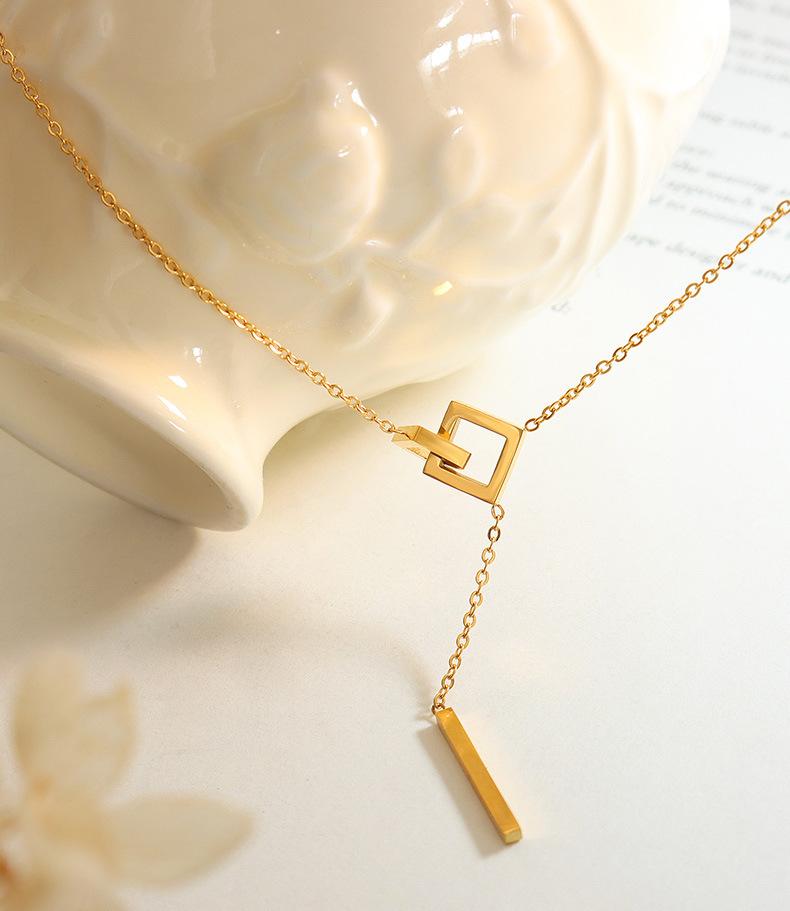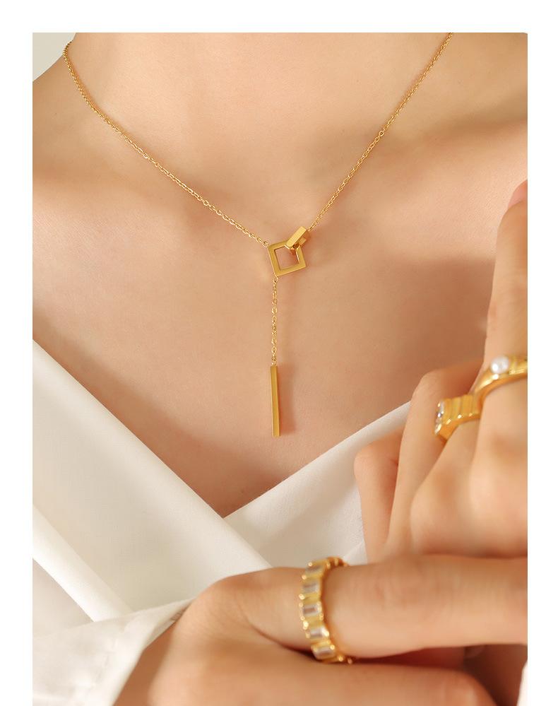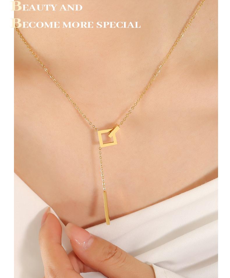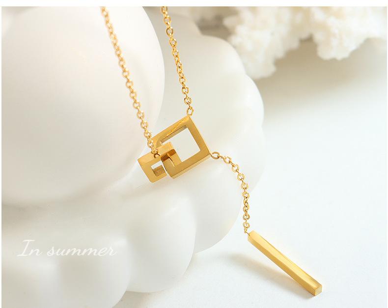 Ins Jewelry Geométrico Quadrado Longo Borla Colorless Jóias Colar Clavícula Corrente Estilo Frio Simples Titânio Aço