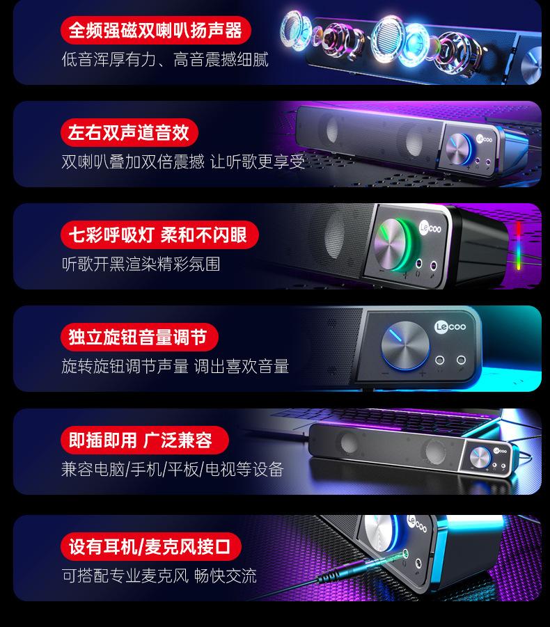 Frete grátisOriginal genuíno Lenovo Laiku/Lecoo com fio/Bluetooth alto-falante de modo duplo longo desktop laptop subwoofer de áudio universalDropshipping no atacado local