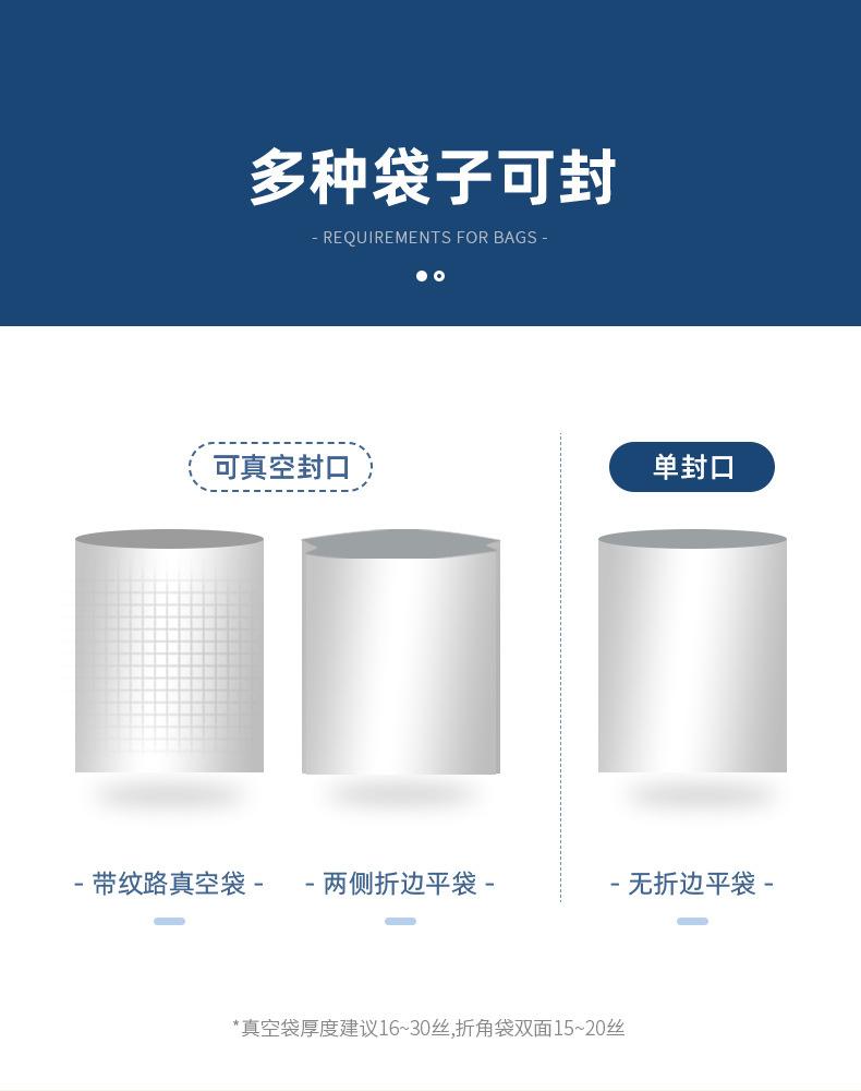 (Requisitos da máquina para sacos:A aspiração deve ser um saco padrão e um saco de canto, outros tipos de sacos suportam apenas vedação única)