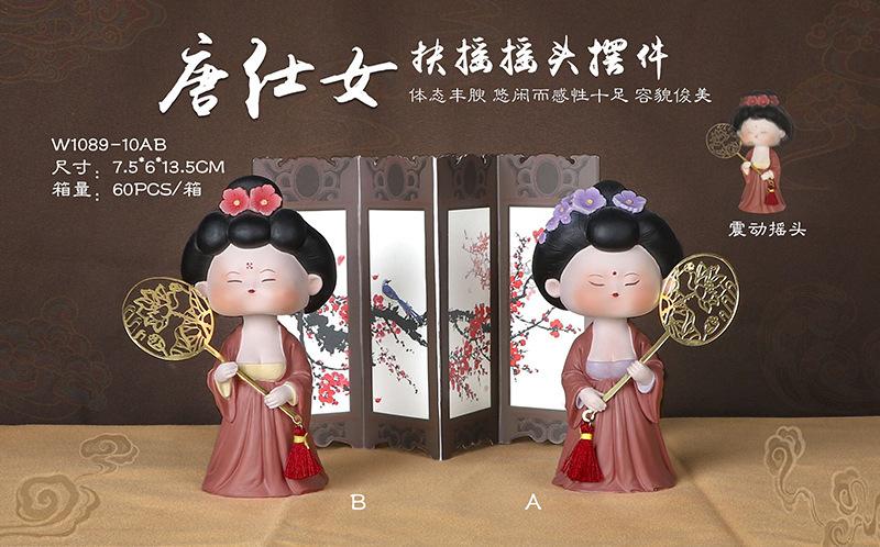 1089-10AB Ornamento de senhora balançando a cabeça da dinastia Tang |