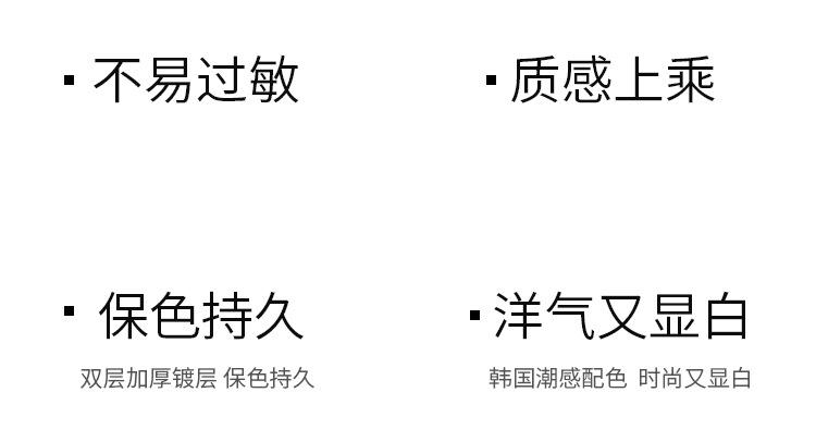 Nossos materiais de joias são todos refinados a partir de cobre branco macio importado e prata. O brilho é como a prata, mesmo sendo lapidado, é difícil para as pessoas comuns distingui-lo. Comparado com a prata pura, além da enorme diferença de preço; camada de platina galvanizada de alta qualidade, prata espessa e revestimento de película protetora, a superfície retém a cor por um longo tempo e não é fácil de desbotar