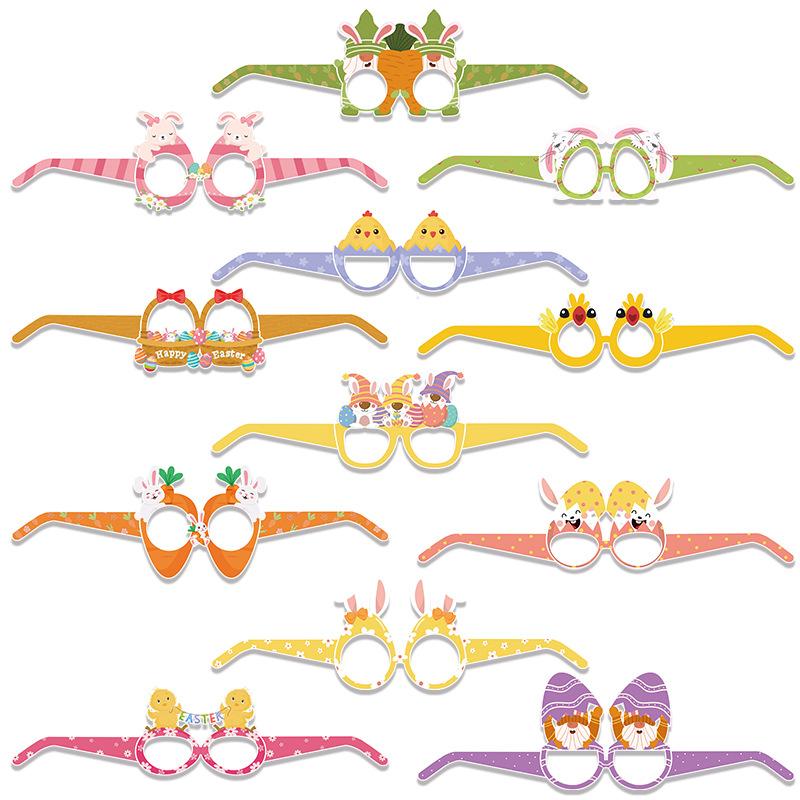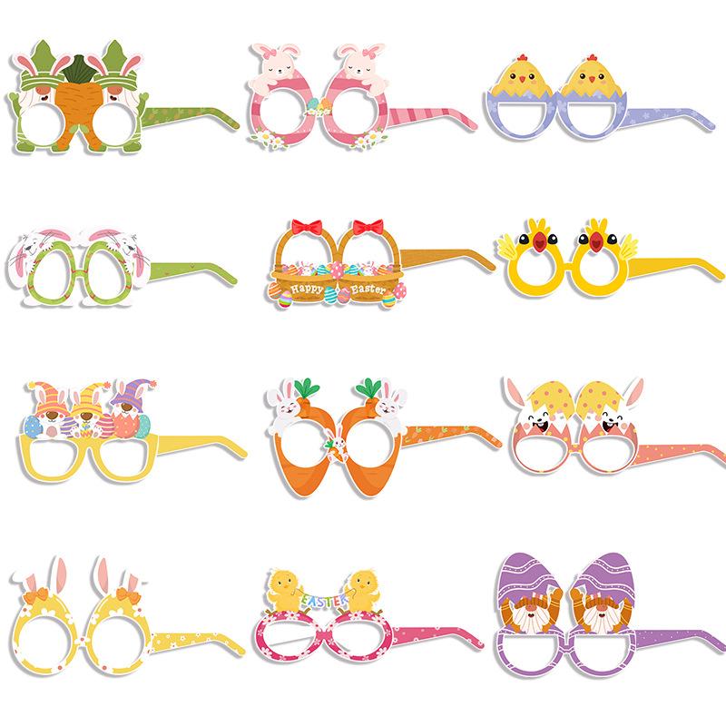 Óculos de papel de Páscoa transfronteiriços, coelho de Páscoa, cenoura, vestido de férias, óculos de decoração de festa (podem ser usados após dobrar)