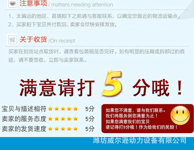 2. Antes do envio, se você não sabe o peso da mercadoria, pode consultar o atendimento ao cliente para saber o peso e o custo de envio. Motores diesel completos e grupos geradores, muitas vezes pesando várias centenas de quilogramas, são enviados de acordo com os regulamentos unificados da empresa.