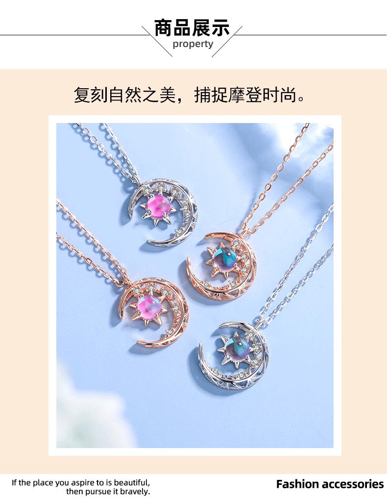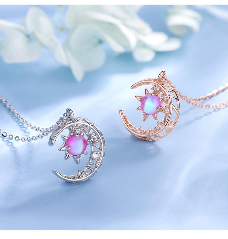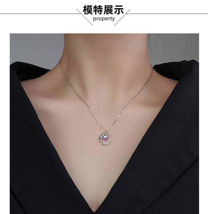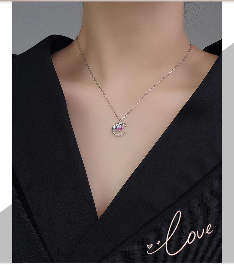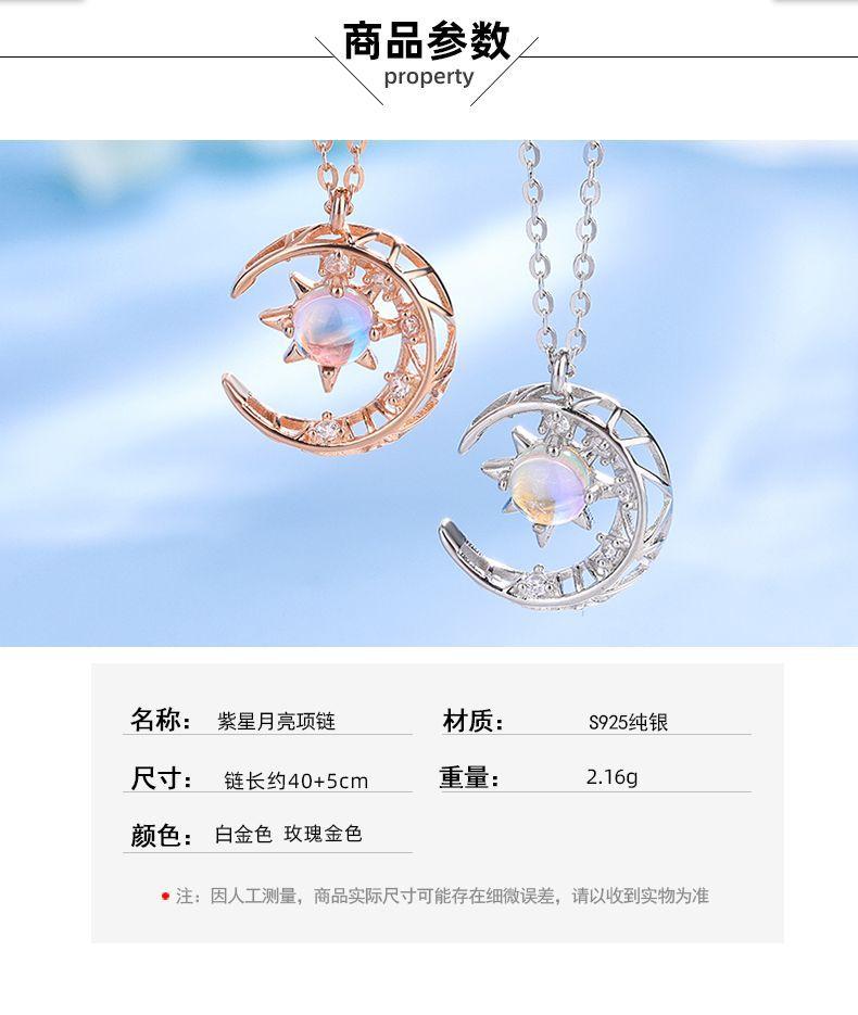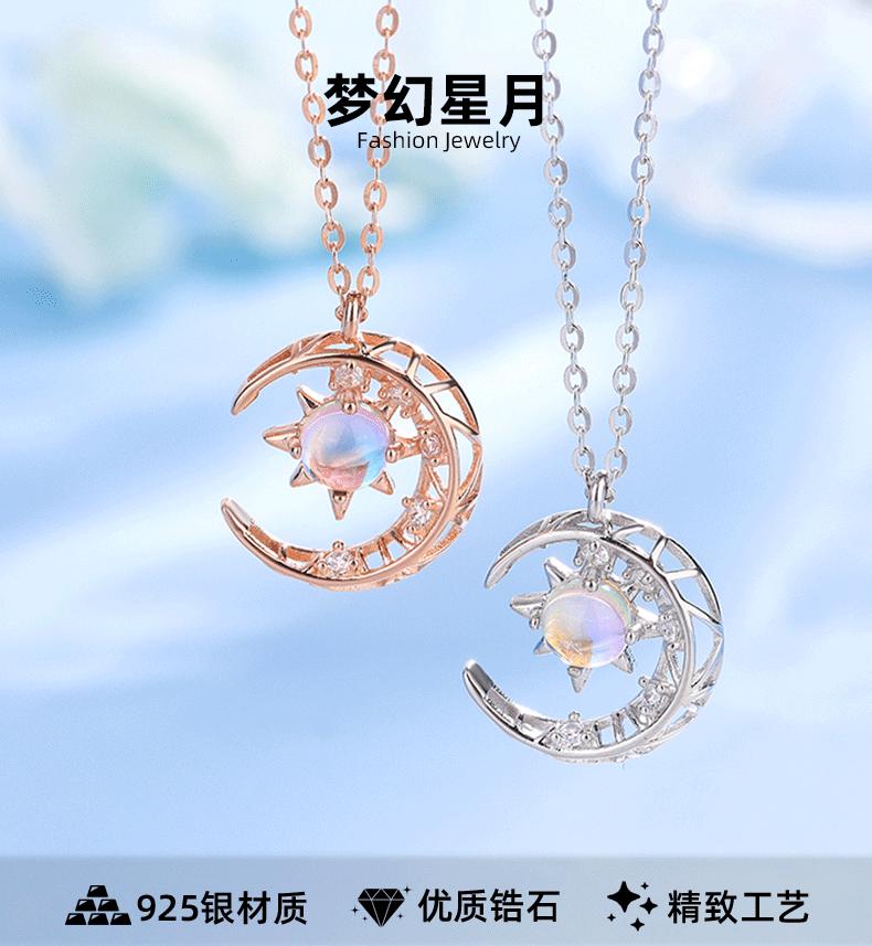 Compre S925 Sterling Prata Sonho Estrela Lua Colar Menina Clavícula Cadeia Super Fada Moonstone Moda elegante nicho colar no atacado no Joom.pro