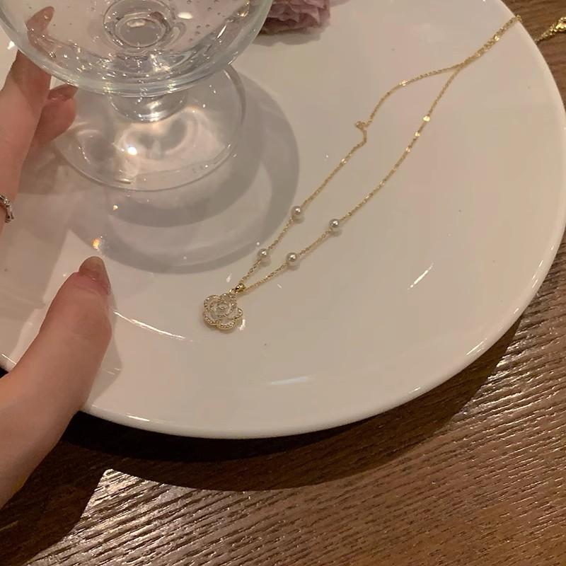 Pérola camélia titânio aço colar feminino luz luxo nicho clavícula corrente design high-end requintado colar doce colar