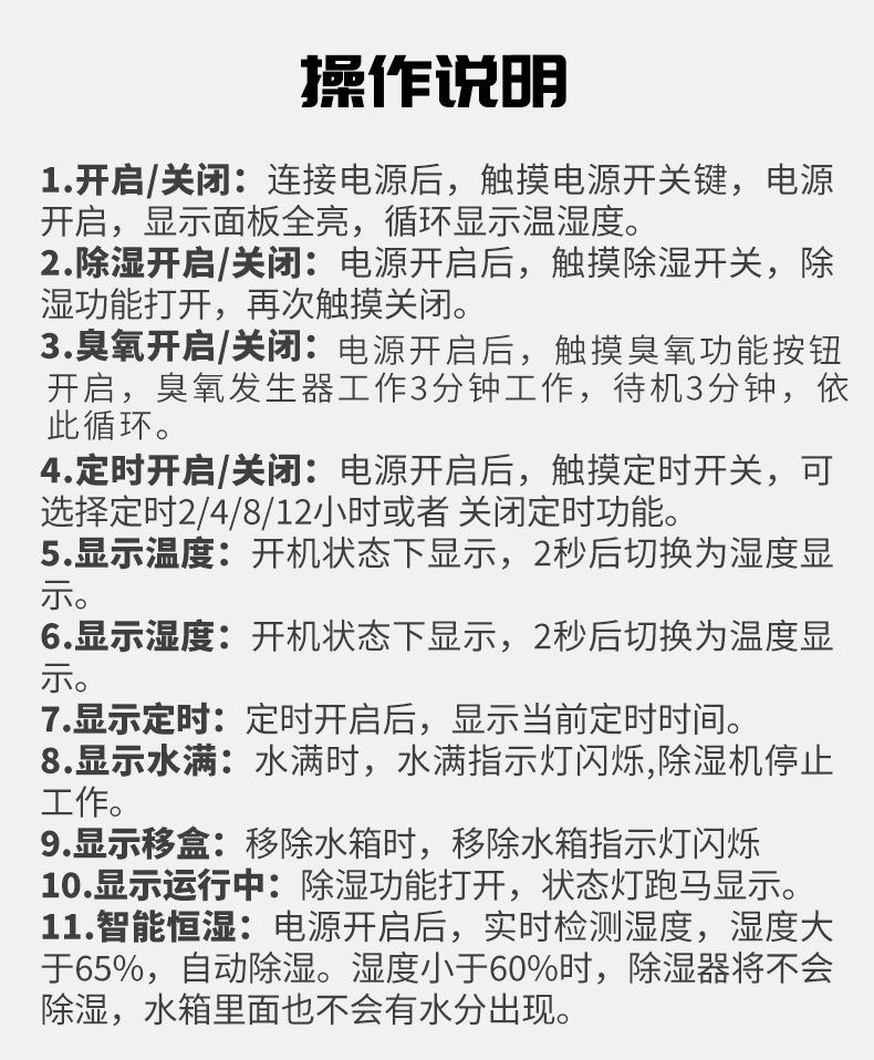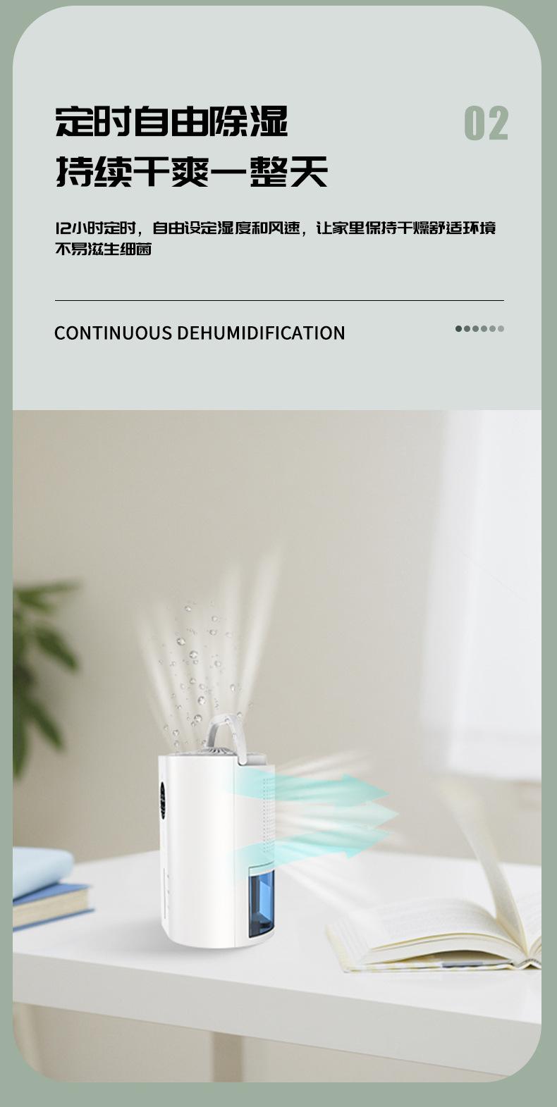 Eficiência de desumidificação: 65~100%RH, 1000ml~2000ml/24h