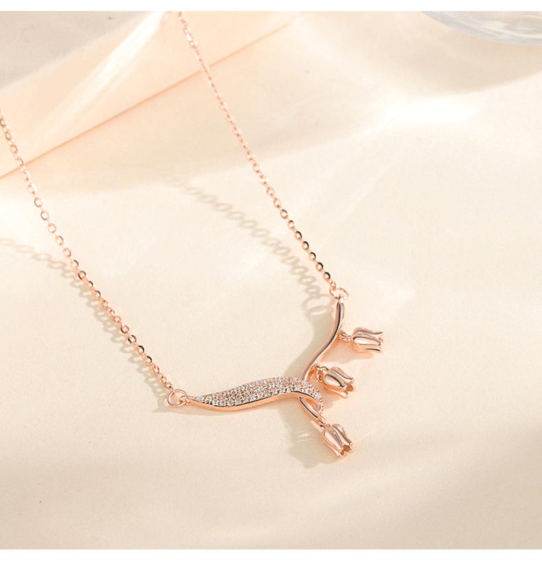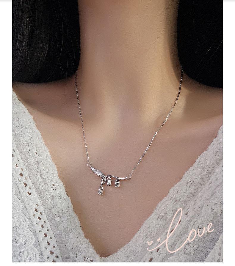 Compre S925 prata esterlina orquídea folha pingente colar flash feminino diamante luz de luxo clavícula cadeia nicho design Y-shaped moda no atacado no Joom.pro
