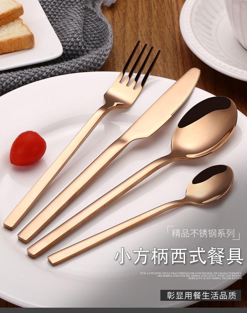 Compre Faca e garfo de aço inoxidável, elegante, atmosférico, espesso, aço inoxidável, banhado a titânio, utensílios de mesa para comida ocidental, faca e garfo de negócios, colher, colher de café no atacado no Joom.pro