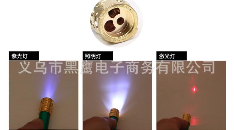 O lado esquerdo sob a cabeça da lâmpada é a função de verificação de moeda, o lado inferior direito é a função de iluminação e o lado superior é a função de laser.
