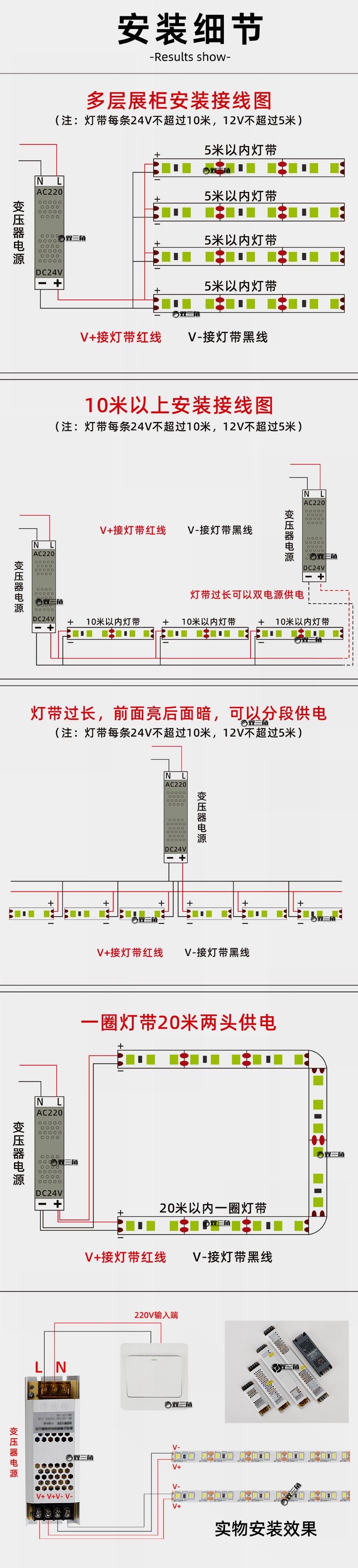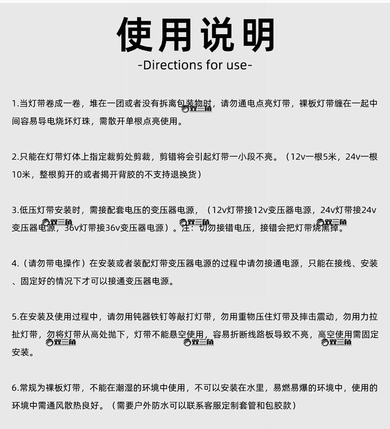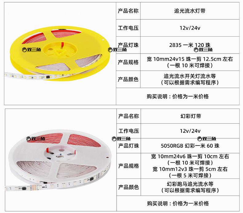 1 metro para 1 peça (personalização suportada). O padrão é uma faixa de luz de placa nua que não é à prova d'água. Se você precisar adicionar um invólucro para impermeabilização ou outras cores de luz, entre em contato com o atendimento ao cliente para personalização. A faixa de luz de fantasia aquática pode ser programada de acordo com as necessidades. As opções que não são escritas como um rolo inteiro podem ser vendidas no varejo. As opções marcadas como vendidas como um rolo inteiro são todas vendidas como um rolo inteiro. Um rolo de 10 metros não é varejo. Existem muitos estilos de faixas de luz e as opções não são totalmente marcadas. Se você tiver outros requisitos, entre em contato com o atendimento ao cliente para personalização. A faixa de luz neste link é um rolo de 10 metros. Somente o rolo inteiro que não é cortado suporta sete dias de devolução e troca incondicionais. Se o rolo inteiro de 10 metros for cortado e o adesivo for removido, o que afeta a venda secundária, ele não será devolvido ou trocado. InstalaçãoSe você precisar de placas refletivas, ladrilhos, materiais refletivos, etc. com um efeito luminoso maior, é recomendado entrar em contato com o serviço de atendimento ao cliente para comprar faixas de luz com mais contas de lâmpada. Faixas de luz convencionais com abajures mais curtos refletirão a luz e produzirão um efeito de luz pontual.As faixas de luz são vendidas principalmente no atacado, por isso não contêm acessórios e não podem ser instaladas em ambientes úmidos ou molhados.A opção convencional é recomendada para ser usada por não mais do que quatro horas por dia, e a opção de iluminação de longo prazo é recomendada para ser usada por não mais do que dez horas por dia. Não pode ser usada por muito tempo. O interruptor deve ser conectado à extremidade frontal da fonte de alimentação, e a fonte de alimentação também deve ser desligada.A fonte de alimentação da faixa de luz não pode ser operada com a energia ligada. Quando suspensa no ar, ela deve ser fixada a cerca de meio metro. Não puxe a faixa de luz com força, não danifique a faixa de luz, não borrife tinta na superfície da faixa de luz para danificá-la, a faixa de luz deve ser instalada em materiais isolantes, não use materiais condutores para fixar a faixa de luz, o que pode causar curtos-circuitos, não permita que a faixa de luz seja deformada pela força, não instale em ambientes condutores ou inflamáveis e explosivos, não instale em ambientes selados e deve ser instalada em ambientes com boa ventilação e dissipação de calor. A instalação do modelo com adesivo requer separação e reforço de cola. A faixa de luz só pode ser cortada na posição especificada. O rolo inteiro da faixa de luz não pode ser aceso e deve ser espalhado e aceso para teste. É fácil enrolá-lo junto. As contas da lâmpada serão danificadas por eletricidade saltando. A faixa da lâmpada tem polos positivos e negativos e não acenderá se instalada normalmente. Os polos positivo e negativo da fiação da tira de lâmpada podem ser conectados à fonte de alimentação ao contrário para acender. A entrega padrão é um rolo inteiro, que precisa ser cortado e soldado por você. Se precisar de um comprimento e tamanho personalizados, entre em contato com o atendimento ao cliente para personalizá-lo. O padrão é um fio de solda de ferro de solda. Se não souber soldar, entre em contato com o atendimento ao cliente para comprar uma interface sem solda. A tira de lâmpada precisa ser conectada a uma fonte de alimentação correspondente antes de poder ser usada. É fácil causar danos se não for correspondente ou não estiver conectado a uma fonte de alimentação. Os compradores compram após ler esta página de detalhes. Instale-o de acordo com as instruções na página de detalhes. As perdas causadas pela não instalação de acordo com as instruções na página de detalhes serão suportadas pelo comprador, e o vendedor não fornece garantia. Colorido A tira de luz tem o efeito geral de mudança de cor das contas de lâmpada RGB e precisa ser usada com uma fonte de alimentação e um controlador colorido. A faixa de luz de três cores que muda de luz tem contas de lâmpada de duas cores, e a outra cor é o efeito de duas cores acendendo juntas. Ela precisa ser usada com uma fonte de alimentação e um controlador de três cores. Além disso, conecte-o ao seu próprio interruptor doméstico comum, e o interruptor mudará para uma cor que está sempre ligada. A faixa de luz de corrida e a faixa de luz de fantasia podem ser usadas no modo normal com um pequeno controlador, e o programa de modo pode ser escrito de acordo com as necessidades com um controlador grande. A faixa de luz de 24 V precisa ser conectada a uma fonte de alimentação de transformador correspondente de 24 V, e a faixa de luz de 12 V precisa ser conectada a uma fonte de alimentação de transformador correspondente de 12 V. A tensão da faixa de luz é baixa tensão 12v24v. A tensão errada está conectada Danos não são cobertos pela garantia, e uma fonte de alimentação de tensão correspondente deve ser conectada. A faixa de luz danificada não é coberta pela garantia se a conexão errada for feita. A faixa de luz de baixa tensão de 24 V tem 10 metros de comprimento, e a de 12 V tem 5 metros de comprimento. O comprimento pode ser emendado e soldado. Se você precisar de uma fonte de alimentação e uma interface sem soldagem, entre em contato com o atendimento ao cliente para comprar. As faixas de luz de baixa tensão têm quedas de tensão. A faixa de alimentação de ponta única de 24 V tem cerca de 10 metros, e a faixa de alimentação de duas pontas tem cerca de 20 metros. Vários grupos podem ser alongados adicionando energia. A faixa de alimentação de ponta única de 12 V tem cerca de 5 metros, e a faixa de alimentação de duas pontas tem cerca de 10