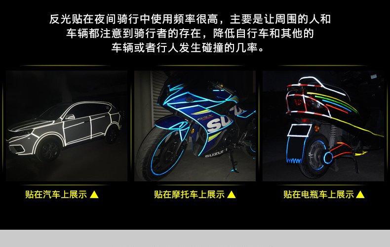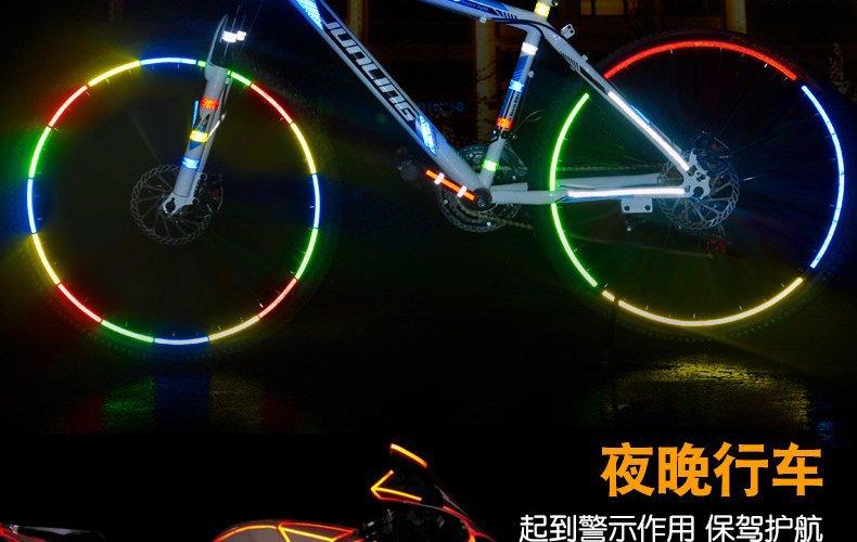 Adesivos refletivos para bicicletas, acessórios para mountain bike, equipamentos de segurança luminosos, bicicletas voadoras, adesivos para carrocerias de rodas de motocicletas, Departamento de Negócios de Acessórios para Bicicletas Dongguan Qingxi Derun