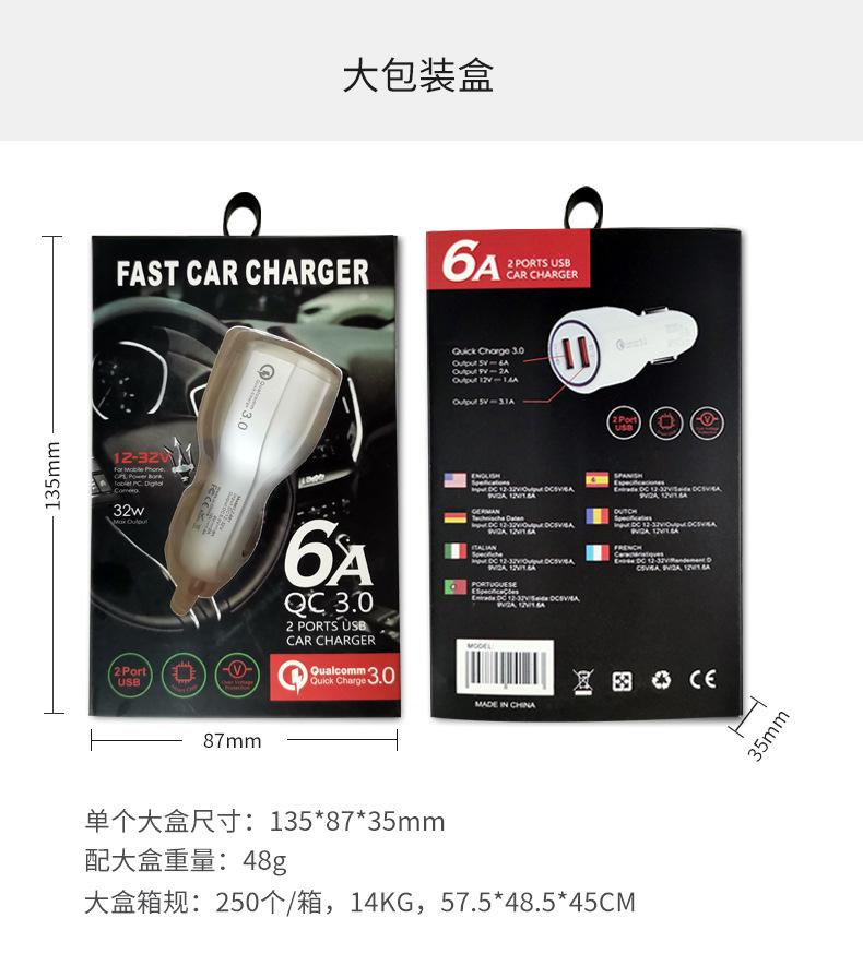 Carregador de carro de carregamento rápido USB carregamento de celular para carro