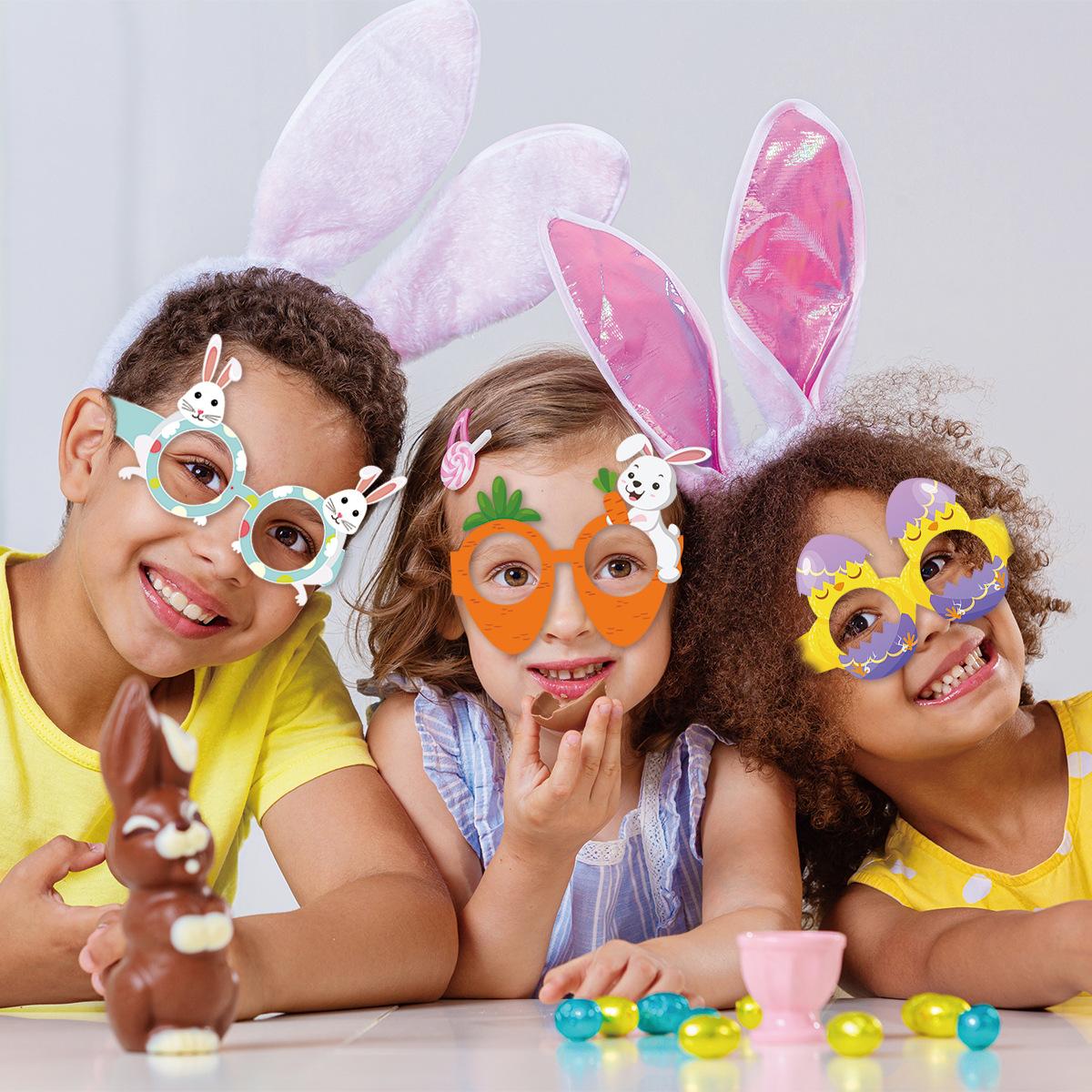 Óculos de adereço de aniversário com tema de Páscoa europeus e americanos com atmosfera engraçada decoração ins layout de cena de festa (podem ser usados após dobrar)
