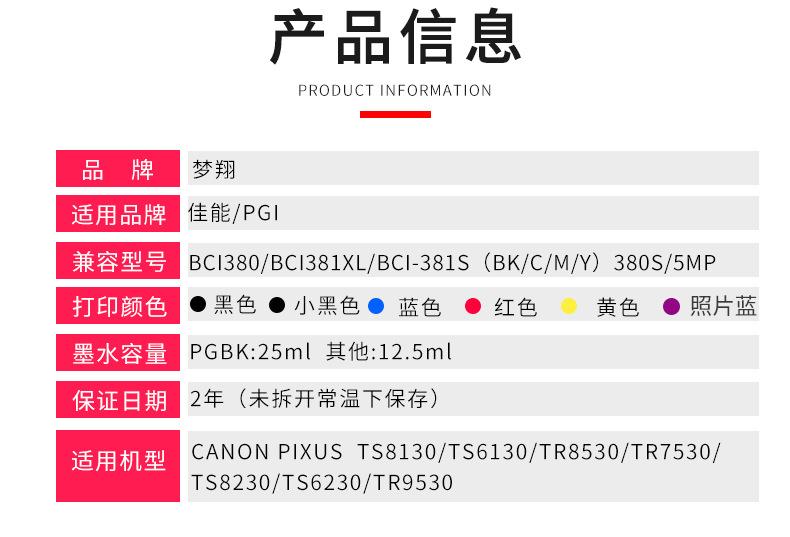 Compatível com cartuchos de tintamodelo:BCI-380XLPGBK BCI-381BK BCI-381 C BCI-381 M BCI-381 Y BCI-381 PK