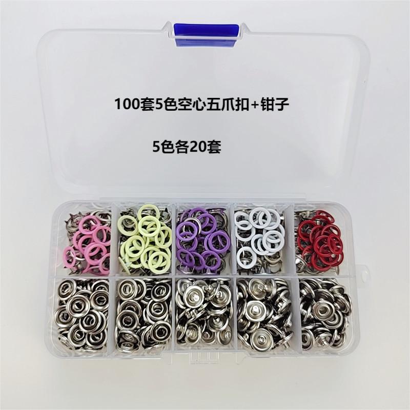Quantidade: 100 conjuntos (20 conjuntos de cada uma das 5 cores na caixa) + 1 alicate