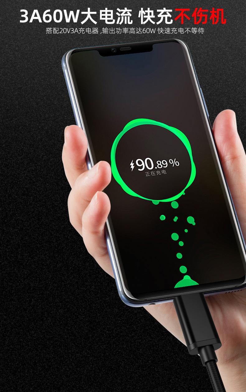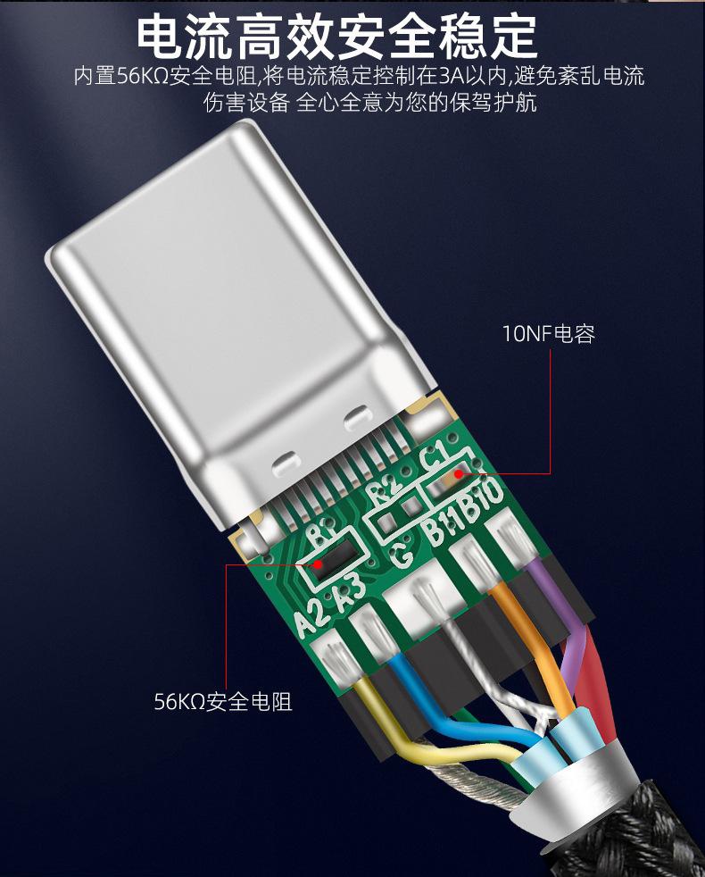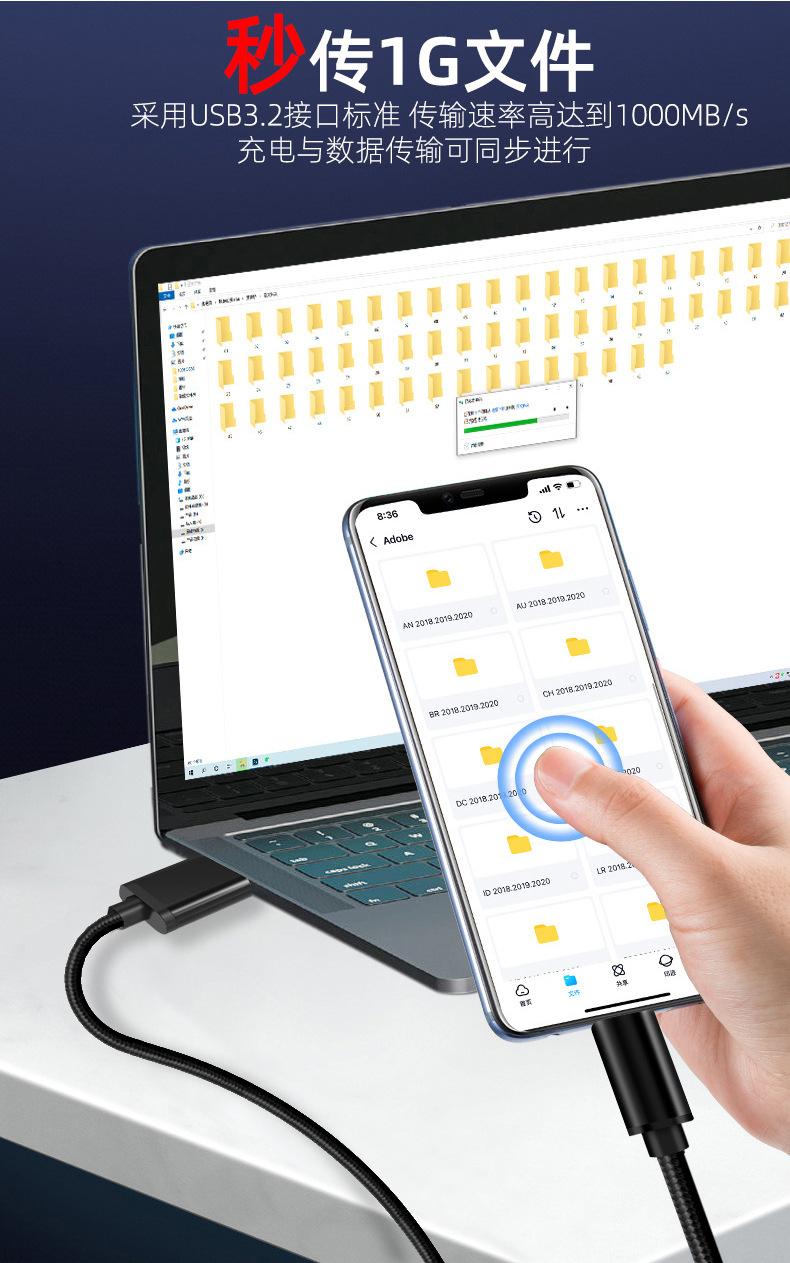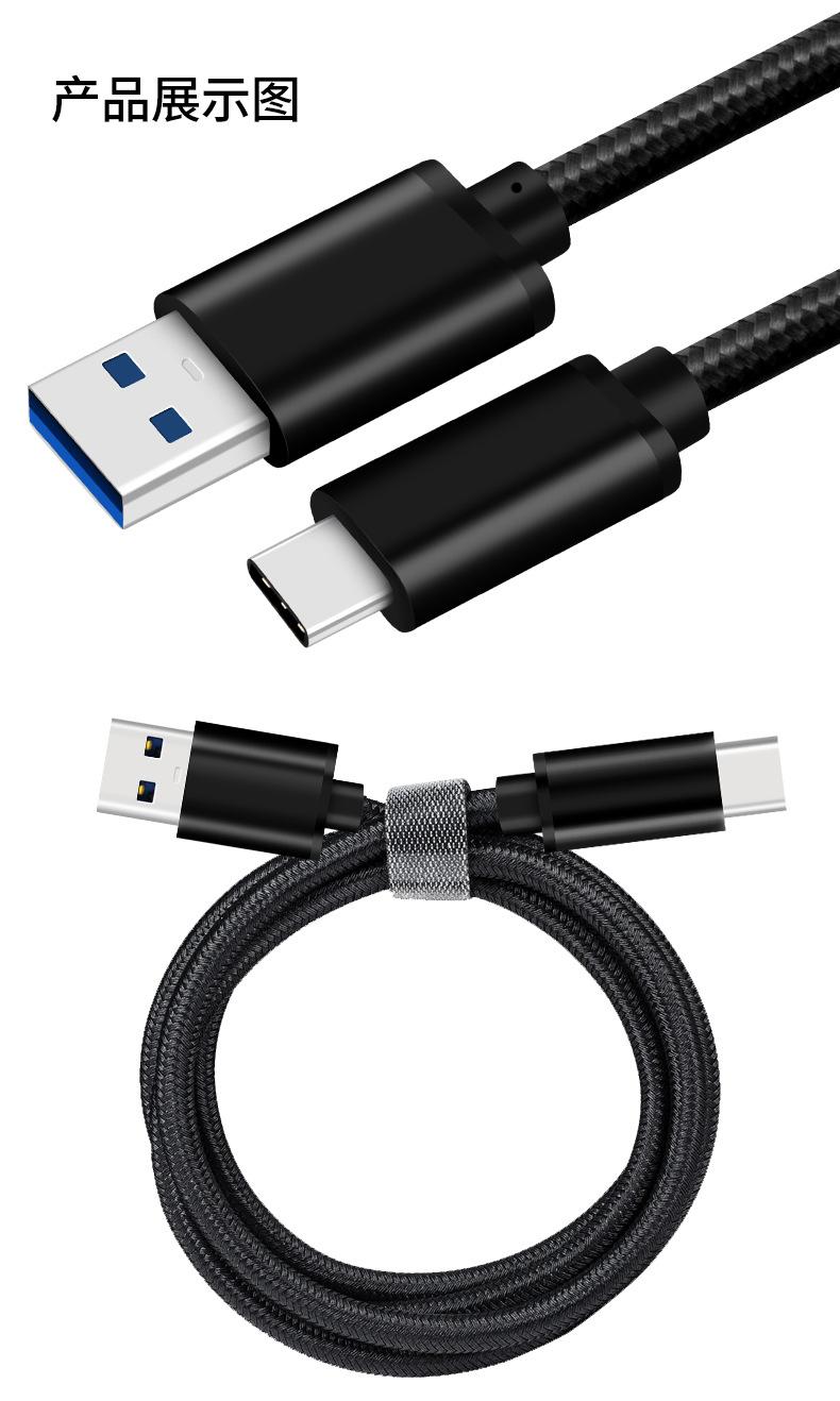 Nombre del producto: Cable de datos USB3.2 a tipo C adecuado para teléfonos móviles de coche, ordenadores, carga rápida de 3A60W, discos duros, cable de datos de 10 Gbps