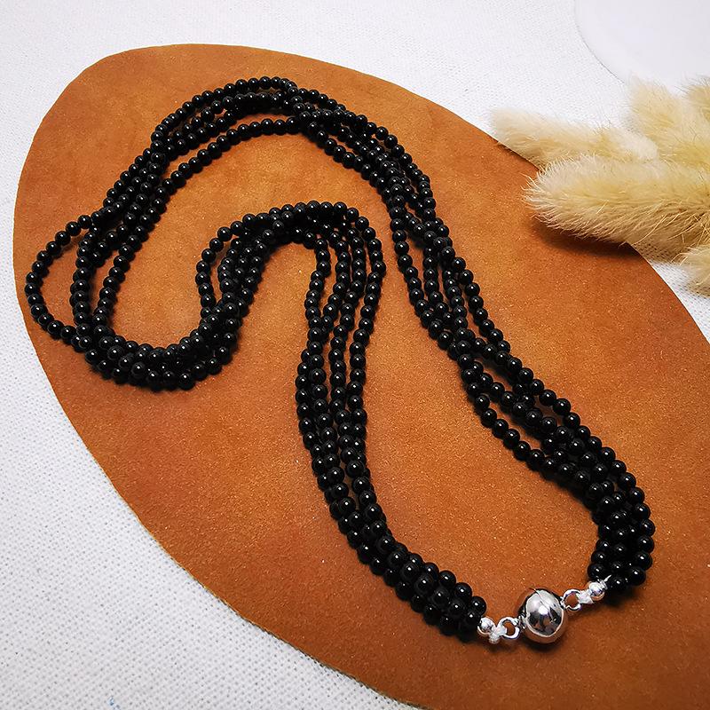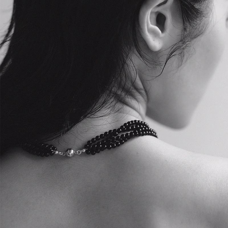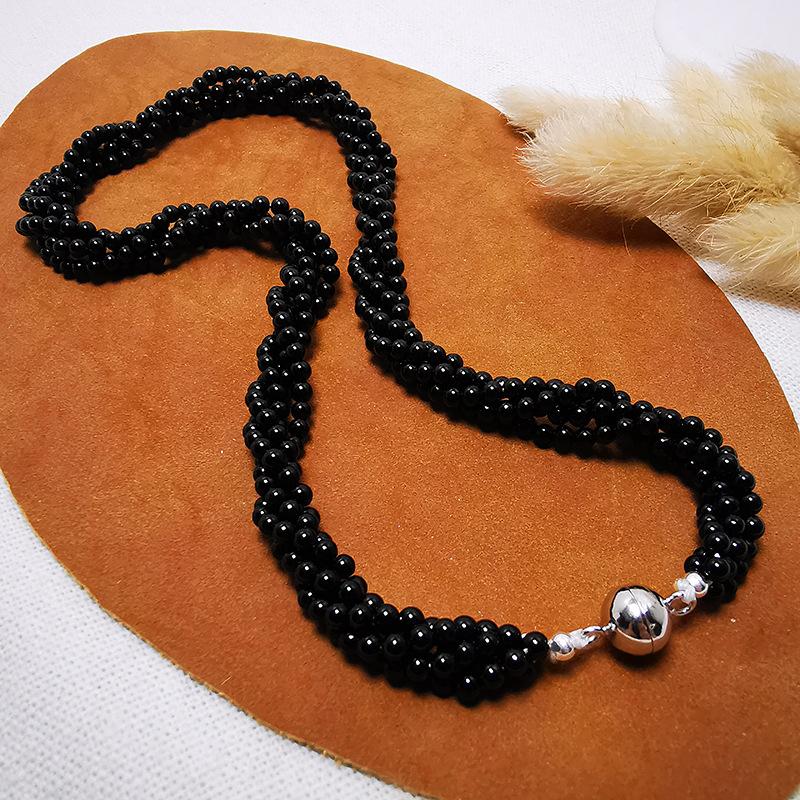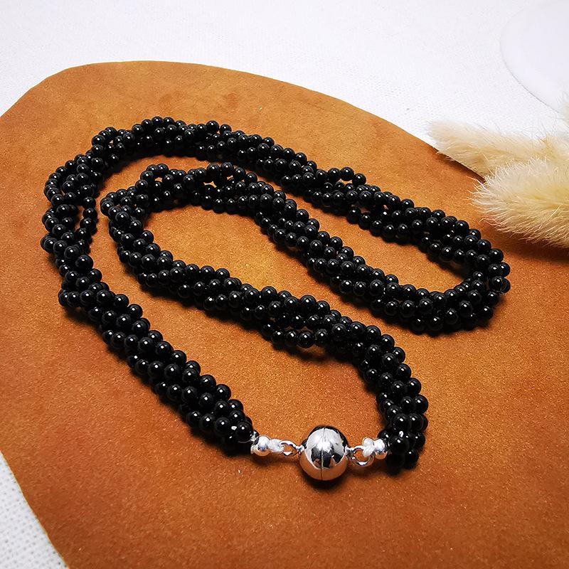 【tamanho do bebê】:Tamanho natural da pedra de ágata pretaCerca de 3 mm de diâmetro, colarO comprimento está disponível em 40CM/45CM. É puramente feito à mão. Se precisar de outros tamanhos, entre em contato com o atendimento ao cliente para personalização.
