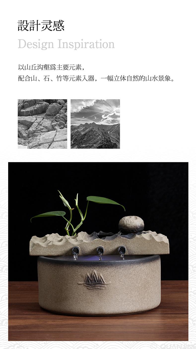 O dispositivo de fluxo de água contém a essência cultural do Feng Shui e Yi Xue; tem o humor feliz de Tao Yuanming de “colher crisântemos sob a cerca oriental e ver tranquilamente a Montanha Nanshan”; e adotando uma abordagem individual extraordinária e refinada da vida.