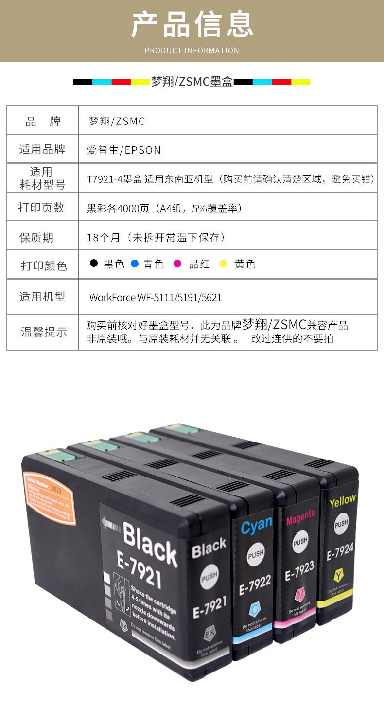 Marca: Meng Xiang Nome do produto: cartucho de tinta 792 Compatível com modelos de cartucho de tinta: T7921 T7922 T7923 T7924 Modelos aplicáveis: WorkForce WF-5111/5191/5621 Cor: preto, azul, vermelho, amarelo Capacidade de tinta: BK 70ML CMY 36ML cada Fornece processamento OEM, grande quantidade e preço favorável. Prazo de validade: 2 anos Embalagem: saco a vácuo ou caixa colorida Pós-venda: Este produto é um consumível compatível. Caso o produto apresente problemas de qualidade, ele poderá ser devolvido ou trocado. A taxa de envio de devolução será suportada pela nossa empresa. Nossa fábrica fornece principalmente processamento para cartuchos de tinta compatíveis, cartuchos de tinta compatíveis com Brother, cartuchos de tinta compatíveis com Kodak, cartuchos de tinta compatíveis com Canon, cartuchos de tinta compatíveis com Lexmark, cartuchos de tinta sem cabeça HP, sistema de fornecimento contínuo de tinta e fornece processamento OEM. Grandes quantidades e preços favoráveis podem ser discutidos detalhadamente. 【instruções do pacote】 A imagem é apenas para referência do modelo. A embalagem é uma embalagem plástica selada + embalagem em caixa colorida. Há um cartucho de tinta à prova de choque dentro. Se não estiver em uso, não rasgue o selo. Pode ser armazenado por mais de 2 anos. . . 【Garantia da Qualidade】