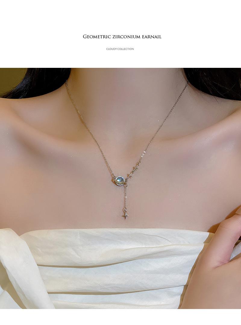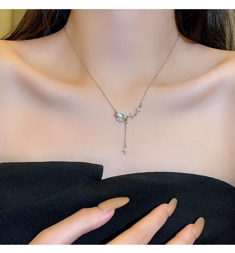 ins design moderno de alta qualidade galáxia universo colar de aço de titânio feminino leve luxo nicho versátil temperamento colar de corrente de clavícula