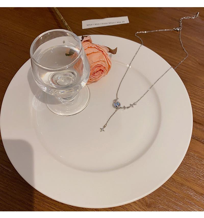 Nicho de luxo leve design high-end azul zircão em forma de lágrima colar de aço titânio para mulheres colar de clavícula temperamento all-match