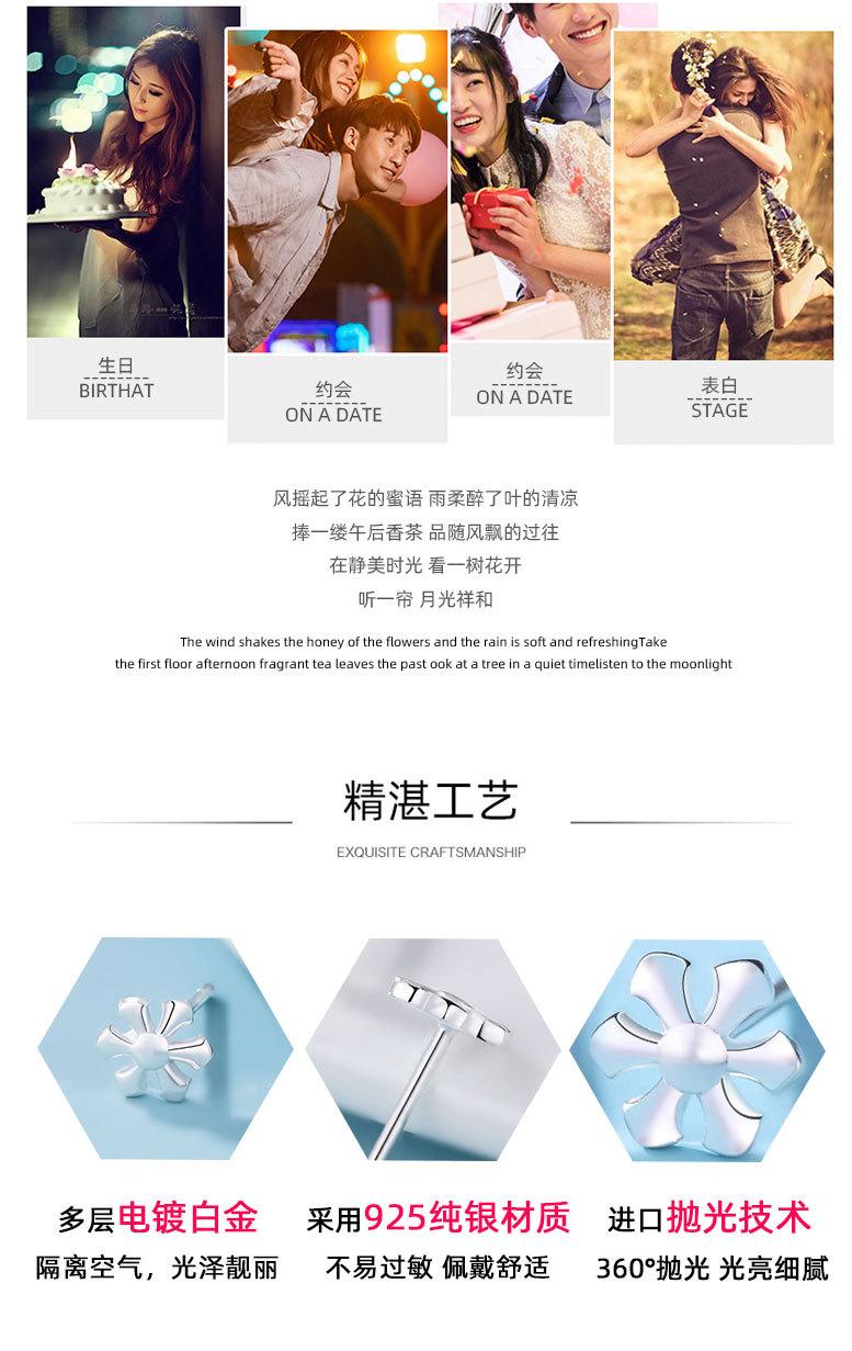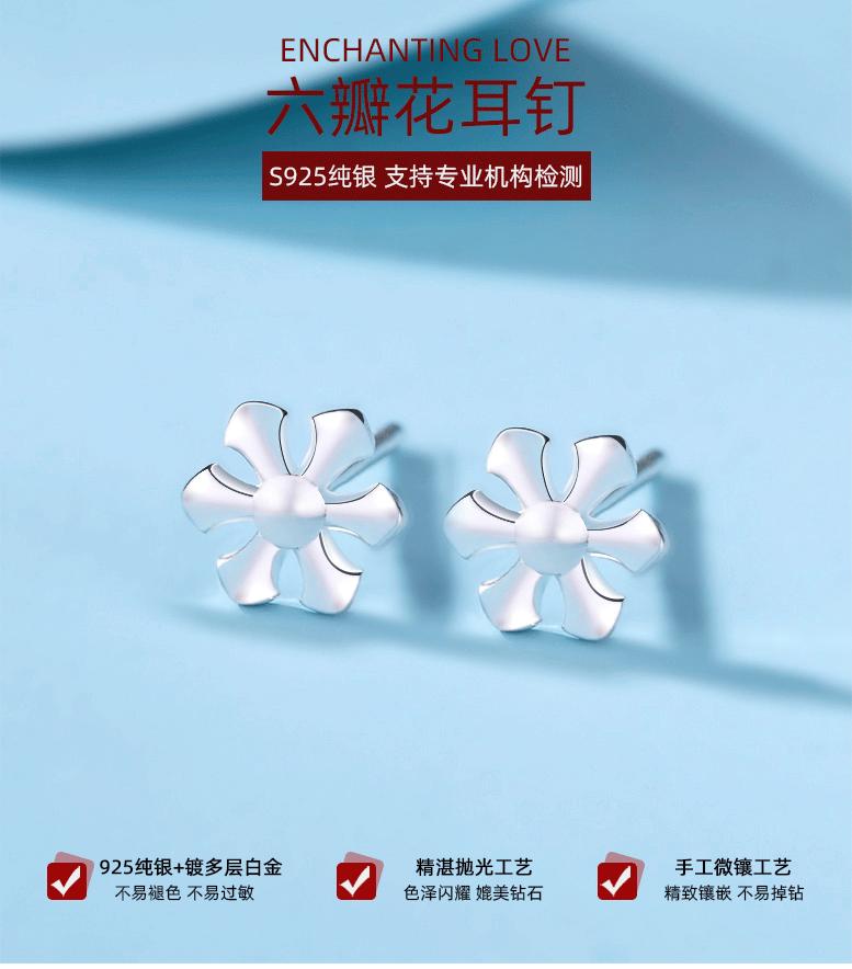 Brincos de prata esterlina S925 para mulheres, brincos pequenos de flor de seis pétalas, pequenos e simples, estilo coreano, brincos de prata, novas joias da moda
