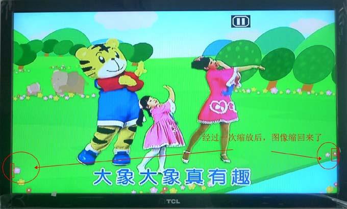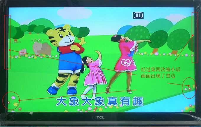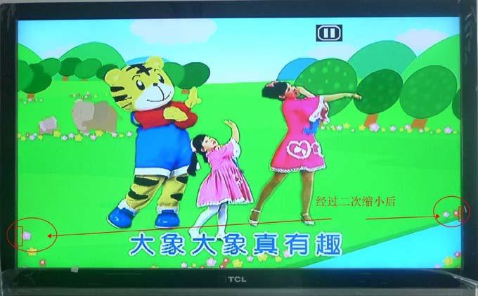 A imagem abaixo mostra o efeito de exibição após o sinal HDMI ser convertido em CVBS através da caixa de conversão e controlado pelo botão ZOOM.